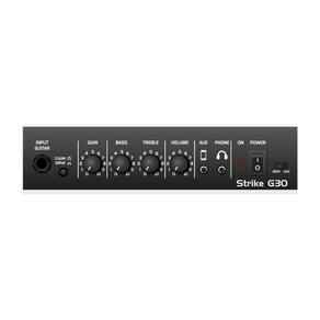 O amplificador para guitarra Strike G30 possui 15w RMS, entrada auxiliar para conectar sua música preferida Através de seu celular, notebook, etc. Essa função permitirá sua melhor performance em Read MoreStrike G30- Alto-falante de 6 polegadas- 15W RMS- Controle de grave e agudo- Ajustes de ganho e master independentes- Saída para fone de ouvido modelo P2 - Entrada auxiliar para conectar celular, notebook, etc modelo P2 - Proteção térmica do circuito de amplificação- Chave de acionamento do canal de distorção- Acabamento em curvim preto, vermelho, laranja, rosa, azul, hollywood ou jornal- Alimentação: 110v/220v- Peso sem embalagem: 3Kg- Peso com embalagem: 3,2Kg- Dimensões sem embalagem L x A x P : 29 x 30 x 17,5 cm- Dimensões com embalagem L x A x P : 30 x 31 x 18,5 cmItens Inclusos:01x Amplificador Strike G3001x Manual de Instruções01x Cabo P10/P10