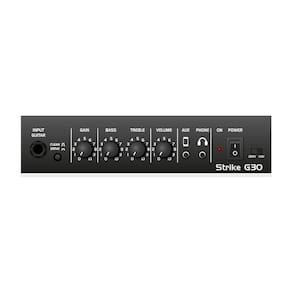 Strike G30 - Alto-falante de 6 polegadas - 15W RMS - Controle de grave e agudo - Ajustes de ganho e master independentes - Saída para fone de ouvido modelo P2 - Entrada auxiliar para conectar celular, notebook, etc modelo P2 - Proteção térmica do circuito de amplificação - Chave de acionamento do canal de distorção - Acabamento em curvim preto, vermelho, laranja, rosa, azul, hollywood ou jornal - Alimentação: 110v/220v - Peso sem embalagem: 3Kg - Peso com embalagem: 3,2Kg - Dimensões sem embalagem L x A x P : 29 x 30 x 17,5 cm - Dimensões com embalagem L x A x P : 30 x 31 x 18,5 cm