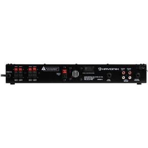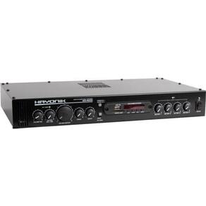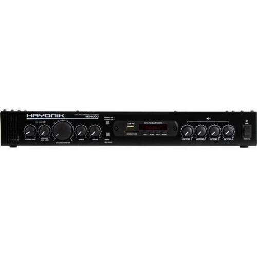 Amplificador hayonik ms4000 400w rms multisetores O amplificador para ambientes hayonik ms4000 é um modelo que permite ao usuário controlar individualmente o volume de até 4 setores. Com 400w de potência rms, é ideal para todos os tipos de ambiente. Possui entrada de microfone, entrada usb para pen-drive, rádio fm, conexão bluetooth, entrada sd card, entrada para microfone e duas entradas auxiliares rca para aparelhos eletrônicos. Possui também a função gongo eletrônico, que quando acionado emite um alerta para uma mensagem. Este amplificador permite ainda a expansão para mais canais conforme a necessidade do cliente. Utilizando-se o ems4000 hayonik. produto vendido separadamente . Equalização:grave, agudo, volume mic, volume aux, volume master Alimentação:bivolt Peso:1,70kg Consumo de energia:560 va Canais:4 Potência:400w rms Impedância:4 ohms Entradas:p10 mono/rca Saídas:até 2 caixas de 8 ohms por canal Dimensões:401 x 54,7 x 145,5mm Thd:0,05% Pesquisa:amplificadormulti setoreshayonikamplificador hayonik modos: usb, sd, bluetooth, fm tensão de rede: 127/220 - vac 60hz controle remoto: sim sensibilidade: microfone/guitarra 15mv linha: 775mv auxiliar 250mv gongo: sim Conteúdo da embalagem: 01 amplificador ms 4000 01 manual do proprietário e o certificado de 01 controle remoto 01 bateria para controle remoto Homologação Anatel: 112572013224 Marca: Não Informado