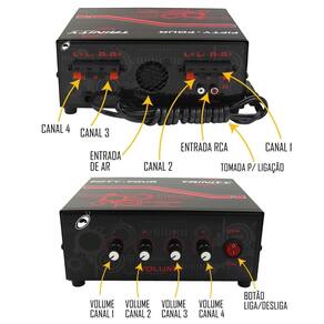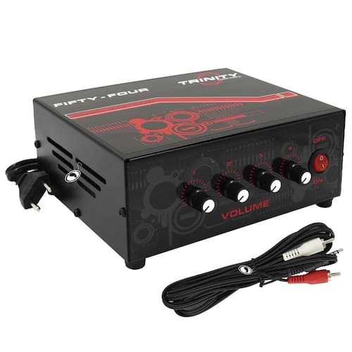 Amplificador de mesa trinity fifty four 200w rms 4 canais preto descrição: agora você pode curtir sua própria música com uma super potência e o menor custo do mercado. O amplificador fifty four possui 200w rms para que você desfrute o som potente. Um excelente amplificador de mesa que pode ser utilizado para tocar seu som onde você estiver. Especificações técnicas: - 4 canais de 50w rms musical