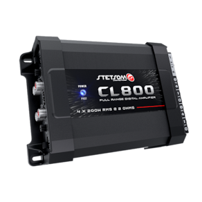 ESPECIFICAÇÕES TÉCNICAS CARACTERÍSTICAS CL800.4 Número de Canais 4 Potência RMS 400W Potência RMS em 2 Ohms 14,4V 4 x 200W Tensão de Alimentação 9V a 15V DC Resposta em Frequência 10Hz a 20KHz Crossover Low Pass 90Hz Crossover High Pass 90Hz Relação Sinal Ruído >90dB Sensibilidade de Entrada RCA: 230mV / HIGH: 1.5V Impedância de Entrada RCA: 23K Ohms / HIGH: 1K Ohm Impedância Mínima de Saída STEREO: 2 OHMS / BRIDGE: 4 OHMS Consumo com Sinal Musical 34A Consumo com Sinal Bass 68A Dimensões (A x L x C) mm 54 x 113 x 163 mm Peso Kg: 745g