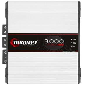 O módulo amplificador 3000 TRIO da Taramps foi desenvolvido com a mais alta tecnologia e desempenho para sistemas de som automotivo. É destinado para a utilização em sistemas de caixa trio, utilizando um único amplificador para alto falantes, drivers e tweeters. Com potência máxima de 3.000 Watts RMS em 2 ohms, o 3000 TRIO conta com crossover variável e duas vias de saída, cada uma com ajuste individual de ganho. A via LOW possui limiter com três níveis de atuação e bass-boost variável, enquanto a via HIGH possui um limiter fixo.