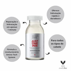 A Ampola Just One Minute hidratação, faz parte do cronograma capilar da linha, composta com a revolucionária tecnologia do Amino Tech System, oferece hidratação rápida e duradoura em apenas um minuto.