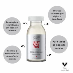 A Ampola Just One Minute Reconstrução, faz parte do cronograma capilar da linha, composta com a revolucionária tecnologia do Amino Tech System, oferece reconstrução rápida e duradoura em apenas um minuto.
