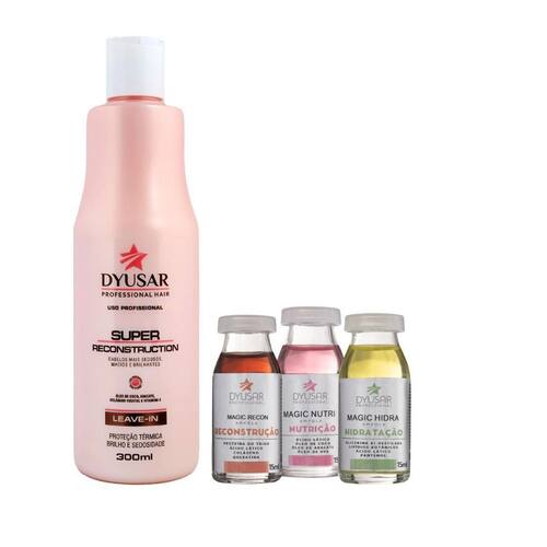 Cronograma Capilar com Ampolas de Hidratação, Reconstrução e Nutrição Dyusar + Leave-In Super Reconstrução Dyusar 300ml