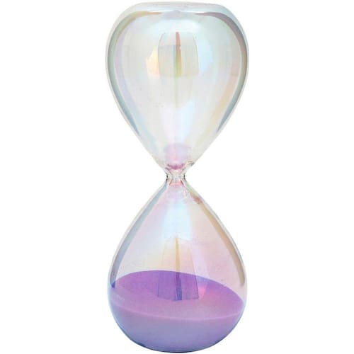 Essa linda ampulheta é produzida com vidro transparente e contém areia na roxa. A função desse produto é exclusivamente ornamental e é considerado o objeto mais antigo do mundo para medir o tempo.