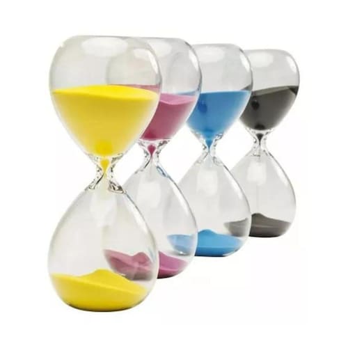 - Tamanho: 20cm x 8cm - Materiais: Vidro e areia - Cor da areia: variada - não é possível escolher - Temporizador: 30 minutos