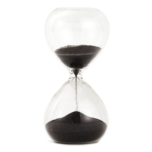 Cód: 18739G Ampulheta Decorativa em Vidro Areia Preta 3 Minutos Material: Vidro e Areia Cor: Preto Dimensões: 10x5cm (AxL)