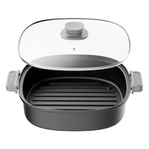 Fritadeira elétrica Air Fryer 2 em 1 com cesto de vidro de 5 litros, função fogão, temperatura ajustável até 200°C, timer com alarme e desligamento automático.Porta-fio