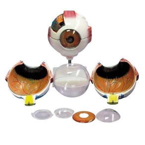 Anatomia do Olho em 8 Partes Modelo confeccionado em resina plástica rígida. Composto por: Globo ocular Coróide Retina esclerótica Lente conjuntiva Pupila Córnea Íris Humor vítreo Nervo óptico Músculo reto lateral Músculo reto superior Vasos.