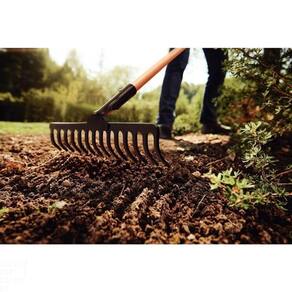 Preparar e nivelar o solo ganhou muito mais praticidade com o ancinho curvo leve com 14 dentes Tramontina em aço sem cabo!