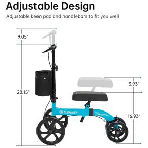 Nossa scooter de andador de joelho se adapta a adultos, recuperando se de uma cirurgia no pé, tornozelo ou perna, pé ou tornozelo quebrado. Com rodas dianteiras de PVC de e rodas traseiras de PVC de , freios de mão de travamento duplo ajustáveis e freios traseiros duplos nas rodas. Guiador e joelheira totalmente ajustáveis, altura do guidão 72 a , altura da joelheira 43 a Pesa 9 kg, ideal para uso interno e externo. capacidade de peso é de 300 libras. Enquanto a estrutura central frontal é projetada para dobrar o andador no tamanho mais compacto possível, fácil transporte e zenamento. Produtos aprovados pela FSA hsa, elegíveis para reembolso pela FSA Marca: Não Informado
