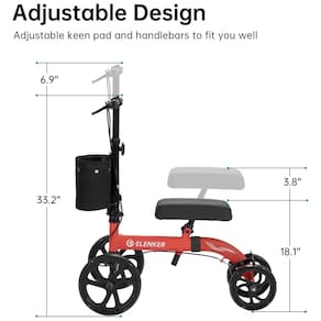Nossa scooter de andador de joelho se adapta a adultos, recuperando se de uma cirurgia no pé, tornozelo ou perna, pé ou tornozelo quebrado. Com rodas dianteiras de PVC de e rodas traseiras de PVC de , freios de mão de travamento duplo ajustáveis e freios traseiros duplos nas rodas. Guiador e joelheira totalmente ajustáveis, altura do guidão 71 a , altura da joelheira 43 a Pesa 9 kg, ideal para uso interno e externo. capacidade de peso é de 136 kg. Enquanto a estrutura central frontal é projetada para dobrar o andador no tamanho mais compacto possível, fácil transporte e zenamento. Produtos aprovados pela FSA hsa, elegíveis para reembolso pela FSA Marca: Não Informado
