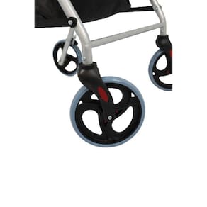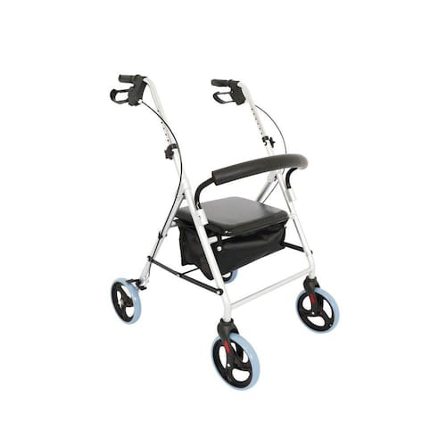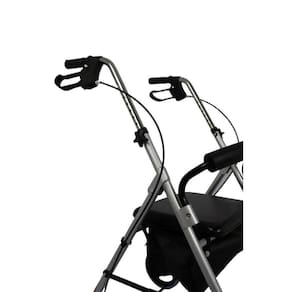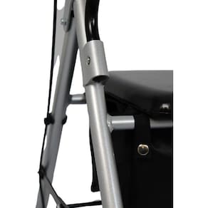 CARACTERÍSTICAS - Auxílio em alterações de equilíbrio e de locomoção, oferecendo apoio e suporte; - Estrutura dobrável, facilitando o transporte; - Freios na manopla, ativos em movimento ou travado quando sentado; - Adaptável, 8 níveis de regulagem conforme altura do usuário entre 1,55m a 1,85m; - Confortável: apoio de mão emborrachado, macio e anatômico, de fácil limpeza ou substituição; - Assento lavável de esponja de alta densidade revestido em PVC; - Cesto de tecido sintético para guardar objetos; - Silencioso: Rodas de PVC 8 polegadas.