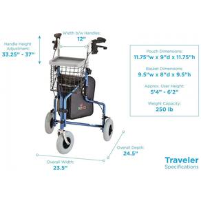 CARACTERÍSTICAS O Traveler é o andador ideal para manobrar em espaços diversos e pequenos, é superfácil de dobrar em poucos segundos e fica na posição padrão dobrado facilitando muito rolar e estacionar em qualquer lugar. Ele vem com uma bandeja, uma grande bolsa de zenamento com zíper e uma cesta. Vem com os recursos padrão da NOVA e um belo acabamento de pintura de longa duração. RODAS E FREIOS Equipadas com rodas de borracha All Terrain de com base larga, as rodas da NOVA são duráveis, ótimas para uso interno e externo e tornam o passeio suave e estável. Os freios de mão de toque de pena patenteados da NOVA são projetados exclusivamente para máximo conforto e controle. É fácil engatar o freio com um aperto pequeno e força mínima da mão. Estacionar ou travar os freios requer apenas um leve empurrão para baixo na alavanca e um puxão para cima para liberar. BANDEJA E ZENAMENTO Vem com uma bandeja, cesta e bolsa com zíper que são todos removíveis Marca: Não Informado