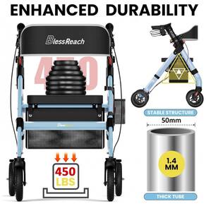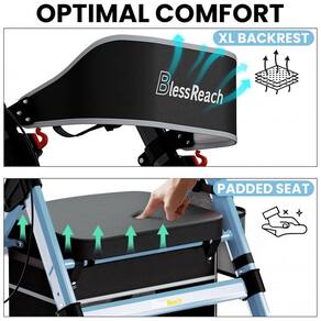 CAPACIDADE DE CARGA DE 200 kg O andador de rolos para serviço pesado atualizado BlessReach apresenta tubos de alumínio de alta qualidade, uma grande vantagem de força é que o tubo cruzado é soldado na parte dianteira e traseira, não apenas aparaf. Embora o plástico seja na alavanca do freio e no conjunto da roda e em algumas outras áreas, as peças de plástico usadas são resistentes e bem projetadas. Encosto mais espesso e assento estofado O andador móvel com assento estofado é muito confortável e o encosto é mais confortável do que a maioria das cadeiras. Se você é pesado e tem uma base larga, também vai adorar esta cadeira, pois ela tem um assento largo e profundo para pessoas maiores. O tecido do assento é impermeável. Bloqueio rápido e rodas de 8 polegadas Os mecanismos de bloqueio funcionam facilmente e bem. Os freios também são fáceis de usar e são sensíveis o suficiente para fornecer um bom controle. Rodas de 8 polegadas que são grandes o suficiente para navegar suavemente em terrenos mais acidentados, facilmente para caminhar em trilhas, grama, calçadões Marca: Não Informado