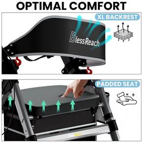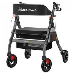 CAPACIDADE DE CARGA DE 200 KG O andador de rolos para serviço pesado atualizado BlessReach apresenta tubos de alumínio de alta qualidade, uma grande vantagem de força é que o tubo cruzado é soldado na parte dianteira e traseira, não apenas aparaf. Embora o plástico seja na alavanca do freio e no conjunto da roda e em algumas outras áreas, as peças de plástico usadas são resistentes e bem projetadas. Encosto mais espesso e assento estofado O andador móvel com assento estofado é muito confortável e o encosto é mais confortável do que a maioria das cadeiras. Se você é pesado e tem uma base larga, também vai adorar esta cadeira, pois ela tem um assento largo e profundo para pessoas maiores. O tecido do assento é impermeável. Bloqueio rápido e rodas de 8 polegadas Os mecanismos de bloqueio funcionam facilmente e bem. Os freios também são fáceis de usar e são sensíveis o suficiente para fornecer um bom controle. Rodas de 8 polegadas que são grandes o suficiente para navegar suavemente em terrenos mais acidentados, facilmente para caminhar em trilhas, grama, calçadões Marca: Não Informado