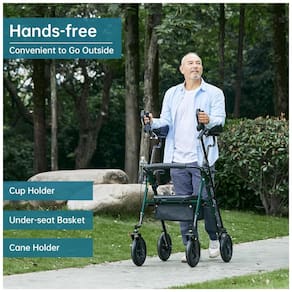 Rodas todo o terreno Rodas PU grandes de de alta qualidade, pneus à prova de explosão, à prova de furos, sem inflação, antiderrapante, resistente ao desgaste, com boa absorção de choque, garantem um rolamento suave ao percorrer caminhos sinuosos ou sobre pavimento acidentado. Apoio de braço fácil de usar Os apoios de braço acolchoados podem ser ajustados no comprimento e no ângulo de retenção de acordo com sua necessidade, permitindo que idosos, deficientes ou deficientes fiquem em pé e olhem para frente com melhor suporte, confiança para andar mais longe e permanecer mais ativo. Assento com almofada macia O assento com almofada é feito de espuma de alta densidade e capa de PU que não racha ou desmorona, mais confortável e durável em comparação com o assento de malha. Acessórios práticos Equipado com uma cesta de zenamento de grande capacidade para zenar itens e um suporte de bengala, guarda chuva, deixa suas mãos livres. Os travões de mão ergonómicos são fáceis de utilizar para um melhor controlo, paragem e estacionamento Marca: Não Informado