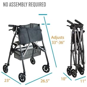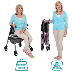 Rollator compacto dobrável O Rollator EZ dobra 3 vezes menor do que os rollators médios, tornando o portátil e fácil de zenar desmonte o andador de 4 rodas como um carrinho de guarda chuva com o toque de um dedo a fivela incluída mantém o andarilho dobrado Assento de poleiro conveniente o assento de viagem antiderrapante de por suporta até 113 kg o assento compacto e a alça traseira oferecem um lugar para sentar e descansar rapidamente durante uma viagem ou na loja o assento de perfil pequeno maximiza a portabilidade do andarilho. Não requer montagem o andarilho é pré montado e pronto para uso direto da caixa as alças acolchoadas podem ser ajustadas de 83 a , ajuste a altura do seu pulso quando o braço estiver estendido para baixo Marca: Não Informado