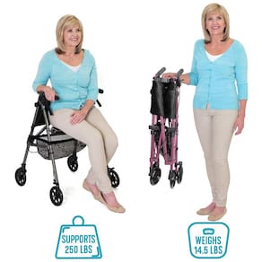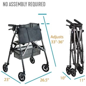 Rollator compacto dobrável O Rollator EZ dobra 3 vezes menor do que os rollators médios, tornando o portátil e fácil de zenar desmonte o andador de 4 rodas como um carrinho de guarda chuva com o toque de um dedo a fivela incluída mantém o andarilho dobrado Assento de poleiro conveniente o assento de viagem antiderrapante de por suporta até 113 kg o assento compacto e a alça traseira oferecem um lugar para sentar e descansar rapidamente durante uma viagem ou na loja o assento de perfil pequeno maximiza a portabilidade do andarilho. Não requer montagem o andarilho é pré montado e pronto para uso direto da caixa as alças acolchoadas podem ser ajustadas de 83 a , ajuste a altura do seu pulso quando o braço estiver estendido para baixo Marca: Não Informado