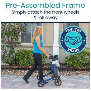 SUPORTE E ESTABILIDADE SUPERIORES Resistente e durável, o andarilho Vive oferece suporte estável, manobrando facilmente sobre qualquer tipo de superfície com grandes rodas esportivas de . A altura da alça é ajustável para um ajuste personalizado para cada indivíduo. Suportando até 136 kg, a estrutura de alumínio é resistente à corrosão e dobra para fácil zenamento e transporte. Inclui um assento e encosto largos para descansar confortavelmente em movimento. DESIGN DOBRÁVEL COMPACTO O andarilho dobrável é compacto quando dobrado, cabendo facilmente no porta malas de um carro ou até mesmo no banco traseiro. Dobragem sem complicações em uma etapa fácil. Basta puxar a alça central sob o assento. Para zenamento mais compacto, as rodas dianteiras são removíveis com um simples botão de liberação e as rodas traseiras são articuladas para dobrar contra o quadro. Ele pesa apenas 20 quilos. SISTEMA DE FREIO DUPLO Cada uma das alças ergonômicas é angulada para posicionar as mãos em uma posição neutra, reduzindo a fadiga e permitindo fácil acesso aos freios de mão estilo bicicleta. Os freios de travamento das rodas garantem que o andarilho não se mova quando ativado Marca: Não Informado