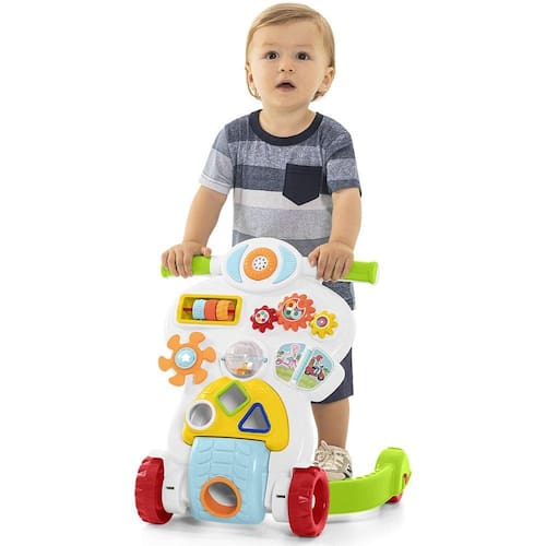 O Andador Bebê Piloto 2 em 1 com Atividades - TaTeTi - Calesita possui som especial de motoca. O brinquedo 2 em 1 com design inspirado em uma motocicleta. É um andador e um centro de atividades que encanta com seus detalhes. Os relevos lembram as de um pneu, as luzes que acendem ao acionar o som e simulam um farol. O painel didático possui diversas interações, como pecinha para girar com barulhinho de “creck-creck”, e peças de encaixar. Estimula a percepção auditiva e visual com luzes e sons divertidos. O andador foi desenvolvido pensando na segurança das crianças. Possui um sistema que trava as rodas dianteiras, caso o andador seja puxado para trás. Sua base ampla garante maior segurança e também transmite mais confiança, possibilitando um apoio firme para o bebê caminhar. INFORMAÇÕES: • Produto: Andador de Empurrar Bebê Piloto • Marca: TaTeTi / Calesita Brinquedos • Dimensões: 43 cm x 43 cm x 46,5 cm • Material: Plástico • Recomendação: para crianças a partir de 9 meses de idade AVISO: • As imagens são meramente ilustrativas. As cores e estampas dos produtos podem ter variações. As informações são de responsabilidade do fabricante ou fornecedor.