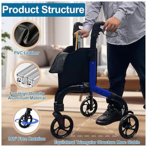 EXCELENTE MANOBRABILIDADE: Compacto e leve, este tri-rollator oferece excelente estabilidade e manobrabilidade em diversos ambientes, desde dentro de casa até ruas movimentadas. A roda frontal giratória permite rotação de 360° em espaços apertados, ideal para uso interno e externo.