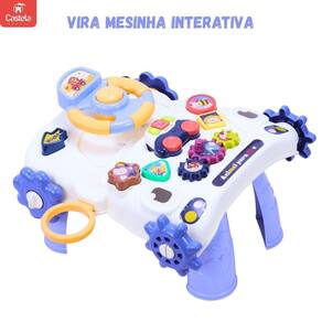 Modo 2 - Mesa de Aprendizagem: transforma-se em uma mesinha interativa com atividades lúdicas, luzes e sons que estimulam os sentidos.
