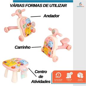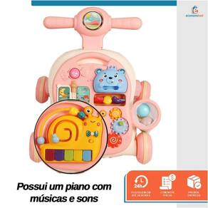 Andador Musical Infantil 3 em 1 Este andador musical infantil 3 em 1 é o brinquedo perfeito para ajudar seu bebê a aprender a andar e se divertir ao mesmo tempo Com seu design colorido e alegre, este andador é repleto de recursos que vão estimular os sentidos do seu bebê e ajudá-lo a desenvolver suas habilidades motoras. Características: 3 em 1: Este andador pode ser como andador, carrinho de passeio e centro de atividades. Musical: Possui um piano com músicas e sons para estimular a audição do seu bebê. Luzes: Possui luzes que piscam para atrair a atenção do seu bebê. Brinquedos: Possui brinquedos pendurados para estimular a visão e a coordenação motora do seu bebê. Ajustável: A altura do assento pode ser ajustada para se adequar ao tamanho do seu bebê. Segurança: Possui freios nas rodas para garantir a segurança do seu bebê. Benefícios: Ajuda o bebê a aprender a andar: O andador fornece suporte para o bebê enquanto ele aprende a dar seus primeiros passos. Estimula os sentidos: Os recursos musicais, luzes e brinquedos do andador estimulam os sentidos do bebê e o ajudam a desenvolver suas habilidades motoras. Divertido: O andador é um brinquedo divertido que vai manter o seu bebê entretido por horas. Especificações: Idade recomendada: 6 a 36 meses Material: Plástico ABS Dimensões do produto: 54cm comprimento x 47cm altura x 40cm largura Pilhas necessárias: 2 unidades, tipo AA/1,5V não incluídas Inclui: Andador Piano Brinquedos pendurados Homologação Inmetro: IP-BRI-0333/2022-02 Marca: Não Informado