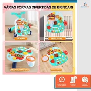 Centro de Atividades Musical: Este andador de bebê oferece um centro de atividades para os bebês, incluindo blocos em formato de animais, engrenagens giratórias, um piano musical e muito mais, proporcionando várias formas divertidas de brincar.