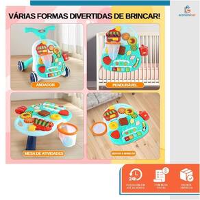 Centro de Atividades Musical: Este andador de bebê oferece um centro de atividades para os bebês, incluindo blocos em formato de animais, engrenagens giratórias, um piano musical e muito mais, proporcionando várias formas divertidas de brincar.
