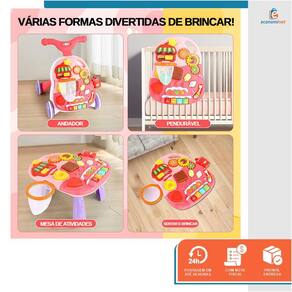 Andador de bebê 2 em 1: O andador de aprendizado de sentar a ficar em pé incentiva os primeiros passos do bebê, desenvolvendo coordenação e força ao empurrar o andador para frente, aprendendo a ficar em pé e caminhar inicialmente.Centro de Atividades Musical: Este andador de bebê oferece um centro de atividades para os bebês, incluindo blocos em formato de animais, engrenagens giratórias, um piano musical e muito mais, proporcionando várias formas divertidas de brincar.Projetado para Bebês: A alça do andador pode ser ajustada de acordo com a altura do bebê. Além disso, ele pode ganhar peso através da injeção de areia ou outros objetos pesados, garantindo que o bebê ande com mais estabilidade.Alta Qualidade e Segurança - Ambos os pneus são revestidos com anéis de borracha antiderrapante, a estrutura triangular suporta o chassi, evitando que o andador vire facilmente. A velocidade das rodas traseiras é ajustável, atendendo às necessidades dos bebês em diferentes estágios de caminhada.Características:Feito de materiais de alta qualidade e não tóxicosEstrutura triangular estável torna o item mais seguroDuas opções de ajuste de velocidade, adaptáveis à velocidade de caminhada do bebêA alça pode ser ajustada de acordo com a altura do bebêDesign de injeção de água, caminhada mais estávelEspecificações técnicas:Material: PlásticoDimensões: 40cm (altura) x 35cm (largura) x 41cm (comprimento)Necessita de 3 pilhas AA (não incluídas)Idade recomendável: 6+ mesesMarca: Baby Style