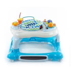 O andador Goal Walker da Cosco 4 em 1 possui dispositivo antiquedas para maior segurança em pisos irregulares e escadas e 3 posições de altura. Brinquedos sonoros e musicais removíveis e assento giratório fácil de limpar. Bandejas de atividades para diversão e educação, removíveis.