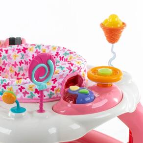 O Goal Walker da Cosco acompanha o desenvolvimento do bebê com 4 funções em um só produto: andador, balanço, pula-pula e centro de atividades. Com assento giratório 360, bandejas com brinquedos sonoros e ajuste de altura, garante diversão com segurança.