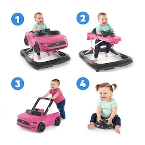 Acelere seu motor e prepare se para pisar no acelerador com Ford e Bright Starts Quando você precisa de diversão em alta velocidade, este andador de bebê oferece o vroom certo para o trabalho. O andador Mustang 4 em 1 rosa é feito para suportar vários estágios de jogo, e dois podem jogar ao mesmo tempo No modo andador normal, os caminhantes iniciantes podem dirigir pela casa com estabilidade e suporte extra. Caminhantes mais experientes podem usar o modo push behind para pegar a estrada dentro de casa. Os sons autênticos do Mustang, as luzes, a alavanca de câmbio, o volante e o visual deste andador esportivo irão conduzir a imaginação do seu bebê Uau Eu sou como mamãe e papai. O centro de atividades do volante removível pode ser para brincar no chão ou em movimento Marca: Não Informado