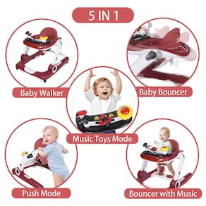 Especificações do produto: Dimensões do Produto: 70 x 55 x 43 cm Peso Máximo Recomendado: 12 kg Tipo de Material: Poliéster, Plástico Composição do Material: Polipropileno Características Adicionais: Altura ajustável, pula-pula, música e luzes Estilo: Andador para bebê Peso do Item: 5,58 kg Cor:Branco,Preto e Vermelho Marca: Não Informado