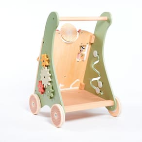 Andador de empurrar, multifuncional, possui mais de 15 atividades diferentes e lindos personagens, promove o desenvolvimento do equilíbrio, cognição e coordenação motora do bebê. O Andador Multifuncional de Madeira Tiny Love acompanha o crescimento e promove o desenvolvimento do seu pequeno com uma ampla seleção de atividades interativas, além de contar com rodas de aro de borracha antiderrapantes. Com design moderno e robusto, ele conta com a paleta de cores exclusiva da Coleção Boho Chic que complementa a decoração do seu lar enquanto promove o desenvolvimento do pequeno, a escolha ideal para bebês e pais. Criado com amor e cuidado por especialistas em desenvolvimento infantil, este sistema apoia os bebês à medida que crescem. Explore como várias habilidades entram em jogo em cada estágio da emocionante jornada de desenvolvimento do seu bebê. Crie áreas seguras onde seu bebê possa andar com segurança atrás do brinquedo e brincar com ele, mas não deixe de ficar de olho no seu pequeno enquanto brinca com o brinquedo, pois as crianças nessa idade nem sempre estão cientes dos obstáculos à sua frente. Para apoiar o desenvolvimento das habilidades cognitivas e de linguagem do seu filho, use palavras simples para explicar o que ele está fazendo com o brinquedo e peça-lhe para fazer tarefas simples, como "Tente mover as contas de um lado para o outro"; "Vire o personagem panda para o lado da árvore", etc. Todos os nossos produtos Tiny Love são concebidos para apoiar o crescimento e desenvolvimento dos bebês em cada uma de suas fases. Com certificação FSC, os Wooden Toys da Tiny Love são grandes aliados da natureza, já que possuem origem 100% ética em florestas geridas de forma responsável com o meio ambiente. Além das embalagens que não utilizam plástico, tem apenas o tamanho essencial e são recicláveis.