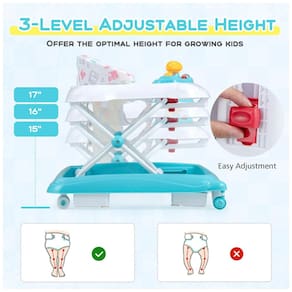 Ajuste de Altura em 3 Níveis: O andador para meninos e meninas possui 3 níveis de ajuste de altura do assento para acompanhar o crescimento do bebê e seu desenvolvimento nas diferentes fases da caminhada. É fácil ajustar o assento para a posição apropriada com base na altura do bebê, prevenindo cientificamente as pernas arqueadas.