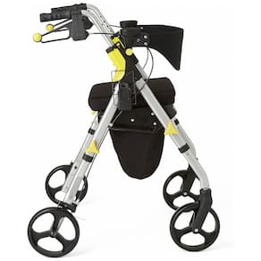 Este andador conta com rodas de 20 cm (8"), proporcionando deslizamento suave sobre a maioria das superfícies. O assento de espuma com memória extra grossa contorna o corpo, criando o alívio ideal para usuários cansados.