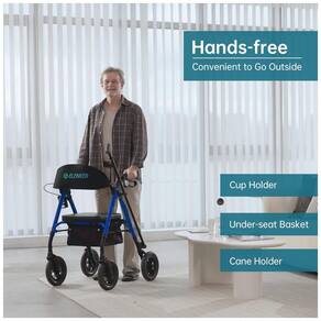 Andador para Idosos com Assento e Encosto Acolchoado e Estrutura Ajustável, Até 136 Kg, ELENKER, Azul
