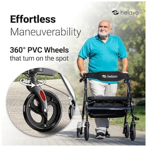 Extra Forte e Largo: O andador pesado Helavo é projetado com uma estrutura de alumínio reforçado, garantindo excepcional durabilidade e uma capacidade de carga de até 227 kg. Seu espaçamento largo das alças de 57 cm proporciona um assento generoso e confortável, ideal para pausas.