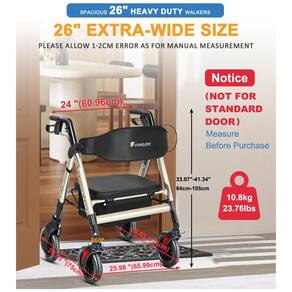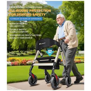 COMFORT HEAVY DUTY ROLLATOR WALKER The Rolling walker apresenta uma estrutura de alumínio para suportar até 200 kg. Você pode virar o encosto para sentar e descansar, e o assento e o encosto são feitos de poliéster macio, é durável e confortável. É amigável para sua cintura e quadris. Por favor, trave os freios quando estiver sentado. TAMANHO AJUSTÁVEL O andarilho dobrável Flyingjoy tem 8 níveis de altura para personalizar a altura adequada do punho e do assento. certifique se de que os orifícios de ajuste de altura estejam na mesma altura e confirme se o botão travou a alça do tubo. PNEUS SEM AR PARA TODOS OS TERRENOS O andarilho para idosos possui pneus sem ar de 20 centimetros com função de absorção de choque, adequado para ambientes internos e externos. DOBRAS E ZENAMENTO FÁCEIS O andador Flyingjoy é facilmente dobrável para transporte e zenamento convenientes. Basta levantar o assento e puxar a alavanca de dobramento para dobrar o andarilho. AVISO O andarilho é para ajudar a caminhar e as pessoas NÃO PODEM empurrá lo quando estão sentados nele Não são necessárias ferramentas para montar e desmontar a cadeira rolante. Siga rigorosamente as instruções Marca: Não Informado