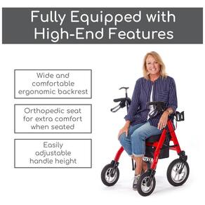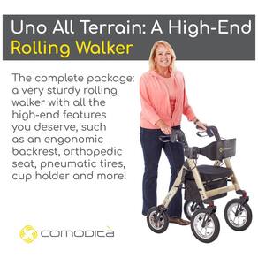 DESIGN EXCLUSIVO PARA FÁCIL CAMINHADA Nosso exclusivo suporte de roda traseira em forma de S oferece um espaço extra amplo entre as rodas traseiras para evitar tropeçar e cair. A construção robusta deste andador o torna mais pesado do que outros. Peso do andador com rodas 15,4 kg. Ele é testado e aprovado de acordo com os padrões internacionais de testes para andadores e andarilhos. PNEUS PNEUMÁTICOS TODO O TERRENO O andador de 4 rodas com assento e freios possui rodas dianteiras de alumínio de 30,5 centimetros e rodas traseiras de 25,4 centimetros com pneus pneumáticos para máxima aderência e tração em todos os terrenos. Ótimo para uso interno ou externo em terrenos acidentados, cascalho, caminhos de paralelepípedos, calçadões e areia firme. Os pneus não funcionam bem em areia fina ou superfícies lamacentas e requerem enchimento periódico. DOBRÁVEL COM ALÇA AJUSTÁVEL Nosso andador com rodas possui uma altura de alça fácil de ajustar, travas de freio de mão para segurança ao sentar e refletores de luz dianteiros. Faixa de altura recomendada de 1,63 m a 1,94 m. O andador dobra se facilmente e trava para zenamento e transporte. PORTA COPOS E PORTA BENGAS O andador com assento para idosos inclui um conveniente saco de zenamento lavável sob o assento para transportar compras e itens pessoais. Vem com um conveniente porta copos Pisa e porta bengala Marca: Não Informado