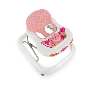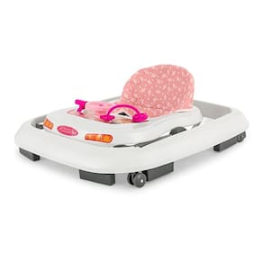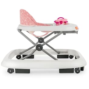 Para crianças até 12kg; Assento acolchoado; Bandeja de brinquedos e adesivos personalizados; Trava de segurança automática; 3 níveis de altura; Freios antiqueda; 4 rodízios, com os dois rodízios traseiros fixos.