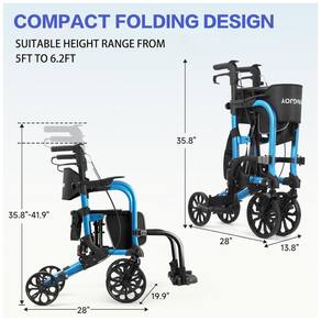 O Andador Rollator é a solução perfeita para idosos que buscam maior mobilidade e conforto. Com estrutura de alumínio resistente e capacidade máxima de 136kg, este andador dobrável oferece uma experiência segura e agradável. Possui encosto ajustável para descanso, apoios destacáveis para os pés e pneus sem ar ideais para uso interno e externo. Com 8 níveis de ajuste de altura, é possível personalizar a altura das empunhaduras, variando de 83cm a 102cm, proporcionando maior conforto. Além disso, o andador é fácil de dobrar para transporte e armazenamento, sem a necessidade de ferramentas. Acesse o compartimento sob o assento para guardar objetos pequenos. Aviso: este andador é projetado apenas para auxiliar na locomoção e não deve ser empurrado enquanto a pessoa estiver sentada.