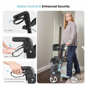 O Andador Rollator Soges é uma escolha durável e estável para idosos, sendo leve e fácil de transportar. Com estrutura reforçada e barras de suporte duplas, suporta até 136kg. Tubulação espessa e construção robusta garantem durabilidade e estabilidade a cada passo. Dobrável e conveniente, possui design inovador que permite dobrá-lo em 3 segundos, facilitando o armazenamento em porta-malas de carro. As rodas de 8 polegadas em PVC lidam facilmente com qualquer terreno, proporcionando estabilidade e conforto. Com sistema de freio confiável, ajuste de altura duplo, design de segurança avançado e bolsa de armazenamento removível, este andador atende a todas as necessidades de mobilidade.