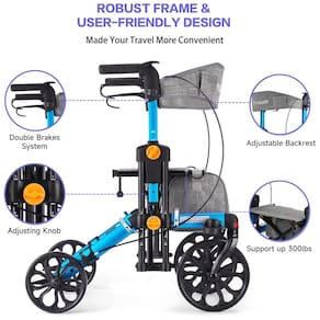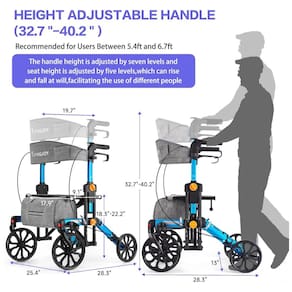 Os andadores FlyingJoy são certificados em segurança e atendem rigorosos padrões internacionais, apresentando uma estrutura de alumínio reforçada e um assento espaçoso de 45,72 cm x 22,86 cm projetado para suportar até 136 kg. Com altura ajustável do guidão e do assento, garantem conforto ergonômico para idosos, pacientes em reabilitação ou indivíduos que precisam de assistência de mobilidade. Possui uma estrutura resistente, bolsa espaçosa para armazenamento e suporte para bengalas, com ajuste de altura do guidão e do assento, proporcionando conforto e segurança durante o uso. Fácil de operar e conveniente para usuários de alturas diferentes. Equipado com uma caixa de armazenamento com capacidade máxima de carga de 5 kg, sendo conveniente para os usuários guardarem itens pessoais como sacolas de compras, livros ou garrafas de água. Indicado para uso doméstico, fornecendo suporte móvel seguro e estável para usuários com mobilidade limitada. Ideal para atividades ao ar livre, como parques e shoppings, devido ao design com peso distribuído. Auxilia no treinamento de reabilitação, permitindo que pacientes em período de reabilitação participem de atividades diárias e promovam a recuperação. Design dobrável, facilitando o transporte e ideal para uso externo. Com capacidade de suporte de até 136 kg e faixa de altura ajustável de 83 a 102 cm, atendendo usuários de 165 a 205 cm. Um dispositivo multifuncional, confortável e portátil, combinando as vantagens de cadeiras de rodas e andadores para proporcionar aos usuários uma experiência de mobilidade segura e conveniente.