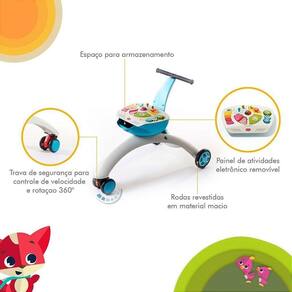 O andador triciclo 5 em 1 tiny love imp01819 - blue é perfeito para acompanhar o crescimento do seu bebê. Com funções de brincar, caminhar, empurrar, ficar em pé e sentar, ele proporciona diversas atividades para o desenvolvimento cognitivo e motor. Esse andador triciclo da tiny love é versátil e cresce junto com o seu bebê, podendo ser utilizado dos 6 aos 36 meses de idade. Ele possui um mecanismo de controle de velocidade, garantindo que o bebê tenha segurança em seus primeiros passos. Além disso, conta com um painel eletrônico com luzes e sons, estimulando a interação e diversão. Fabricado com materiais de alta qualidade, como abs, pp, pvc e ps, esse andador triciclo é resistente e durável. Suporta até 25 kg e possui rodas revestidas, proporcionando um deslocamento suave e silencioso. Acompanhado por um cesto para guardar os brinquedos e um painel eletrônico removível, o andador triciclo 5 em 1 tiny love imp01819 - blue é prático e funcional. Ele vem com uma garantia de 12 meses contra defeitos de fábrica e está de acordo com as normas de segurança do inmetro. Dimensões da embalagem: - altura: 39cm - largura: 59cm - comprimento: 23cm - peso: 3,3kg