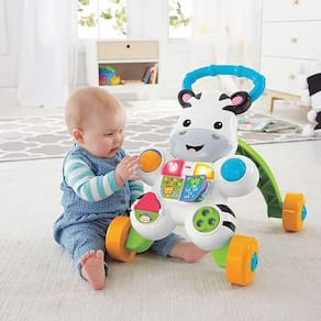 Das primeiras palavras aos primeiros passos, o Apoiador Zebra Aprenda Comigo da Fisher-Price é o tipo de primeiro amigo que você vai querer para o seu bebê! Girar, virar, rolar, torcer. Esta zebra é cheia de atividades manuais para bebês que brincam sentados. Seu bebê pode virar a página do livro ou pressionar os botões iluminados para ouvir tudo sobre o ABC e o 123, através de canções e frases de seus novos amigos animais! E quando estiver aprendendo a andar, a barra firme e a base robusta com 4 rodas podem servir de apoio aos primeiros passinhos cambaleantes. "Continue!" Muitas frases divertidas, músicas e canções incentivam e recompensam ainda mais a movimentação do bebê, ajudando os pequenos a obter ainda mais estabilidade ao ficarem de pé! (E deixando as mães respirarem com maior tranquilidade).