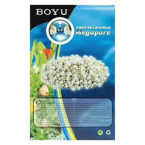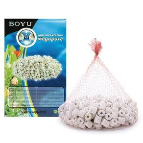 Os anéis de cerâmica Boyu são mídias filtrantes porosas e permeáveis de alto desempenho, fabricadas a partir de materiais sintéticos e naturais como vidro e barro e sintetizados em alta temperatura que passam de 1200 graus, proporcionando um ótimo instrumento para a colonização de bactérias benéficas ao aquário ou lago. Essas bactérias realizam a nitrificação aeróbica e nitrificação anaeróbica ao mesmo tempo, tornando a qualidade da água mais saudável.